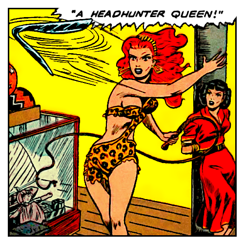 Sina Kerry was an Australian ranch owner who ran an international diamond smuggling ring. When a customs inspector started getting too close to her operation, she had her henchmen take him out. When journalist Kitty Doyle tried to arrange an interview with her, she became suspicious and kidnapped her. Kitty's boyfriend, race car driver Simon Binder, who was secretly the Silver Streak, realized that Kitty had disappeared and tracked the criminals to a toy store they used to distribute their merchandise. The Headhunter Queen attacked the Silver Streak with her boomerang, but he managed to dodge all of her attacks thanks to her speed and after defeating her he handed her over to the authorities, earning himself a mortal enemy in doing so.